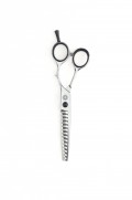 Part of our creative design range, freehand texturising is possible with either of these scissors. Give … to your concepts. Available in finer grade for blending and chunky grade for texture, the unique designs mean that the cutting lines are less visible resulting in more refined texture and performance. Both scissors are offset and use a bottom blade allowing the stylist to pick up the hair with the blade.